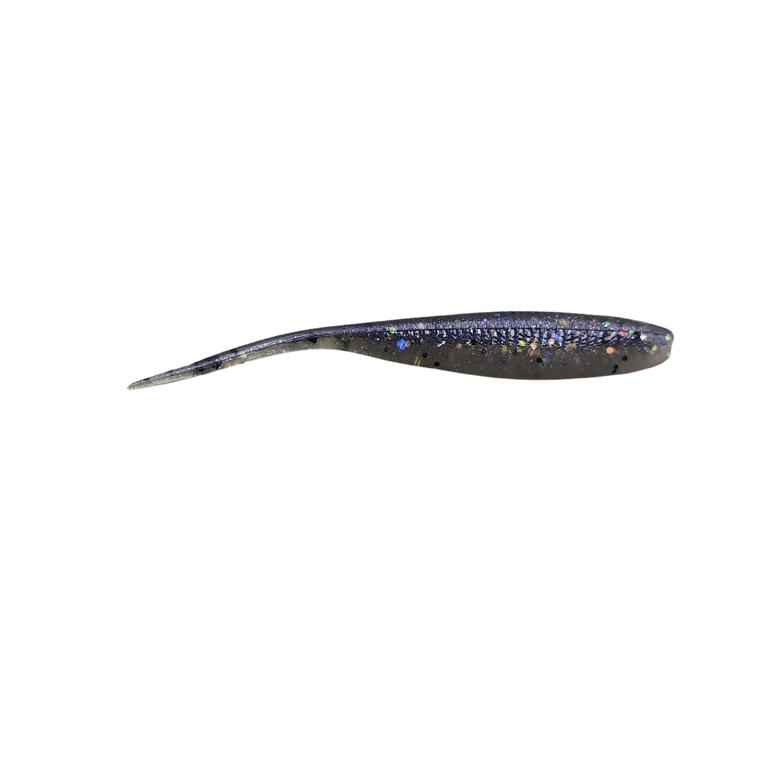 Phoxinus (Fox-y-ness) or Minnow, This bait is just the perfect size for rigging on your favorite jig, chatterbait and drop shot with both Natural Bait Fish or Glow In The Dark options this bait is sure to put those Monster Slabs, Large and Smallmouth Bass and finicky Walleye's in the boat. Tapered belly section for bait stability and roll plus the long fluke style tail improves glide.
