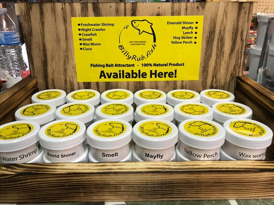 Billy Rub scents are 100% all-natural bait-flavored fish attractants made out of what drives fish wild – real, natural food because fish don't eat salad! Scents include Emerald Shiner, Mayfly, Smelt, Wax Worm, and more. Choose your flavor and land the big ones!