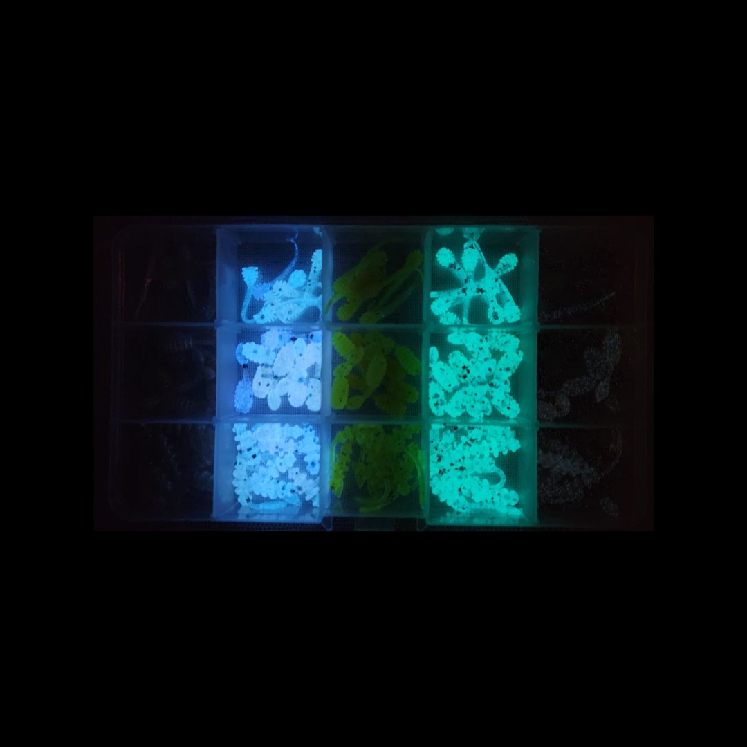 The Billy Rub Pro Panfish Box contains 120 total baits including Ticklers, Bangers and Lil Devils in 6 of our Glow in the dark plus protein infused different colorways. All baits range from 1" to 1.5" in length.